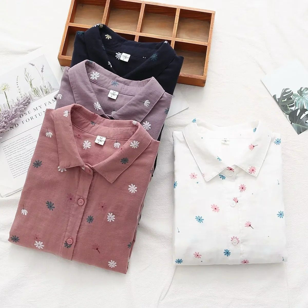 Flower Printed Long Sleeves Cotton Comfort Shirt